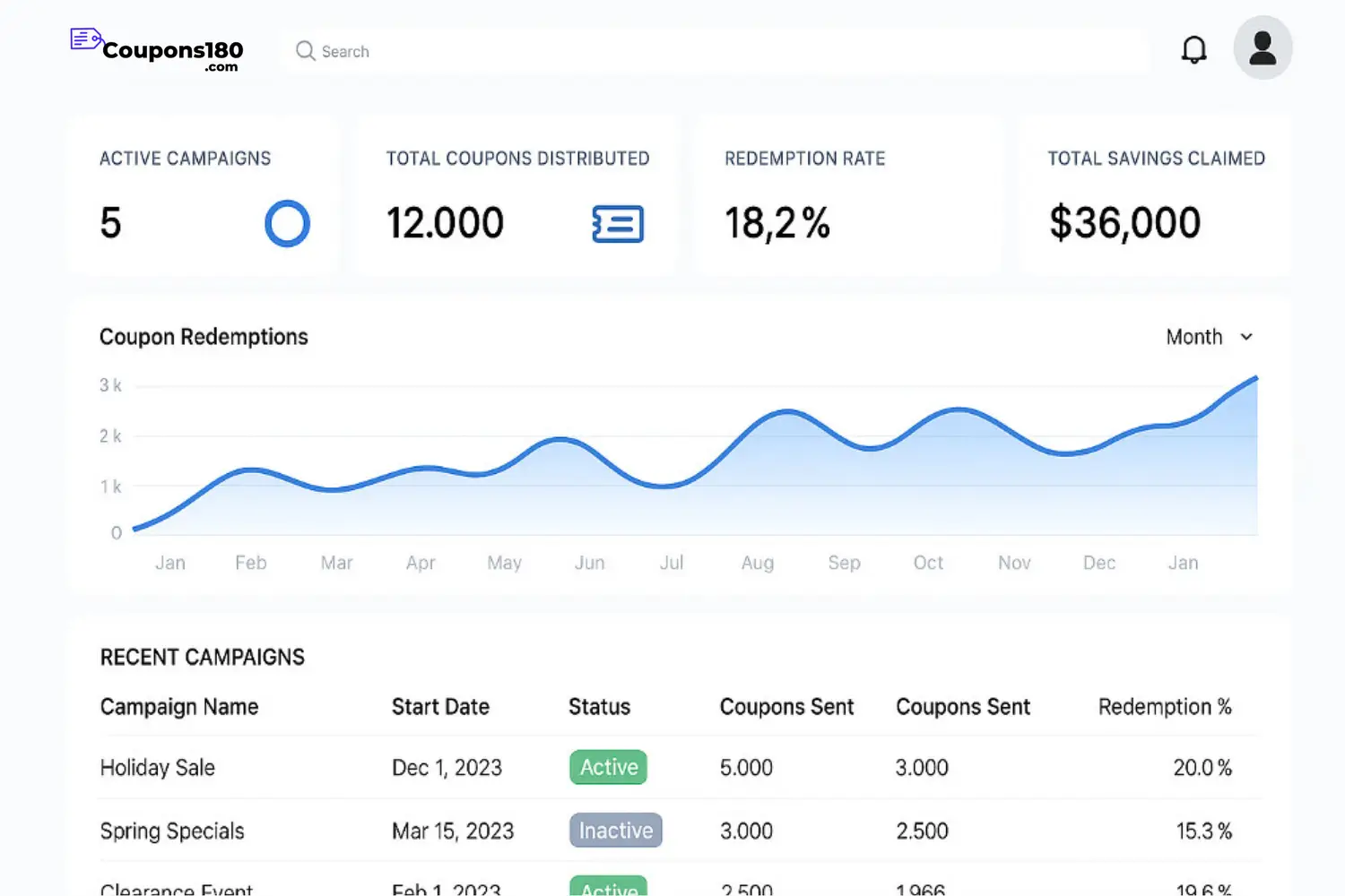 Coupons180.com is a digital coupon builder and a marketing platform for businesses seeking more customers.